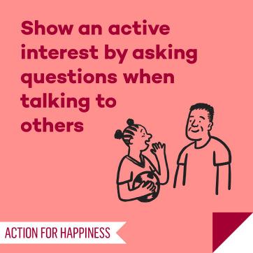 Action for Happiness brings people together and provides practical resources. We help each other learn evidence-based skills for happier living, feel a sense of belonging and commit to personal action to create more happiness, for ourselves and others.